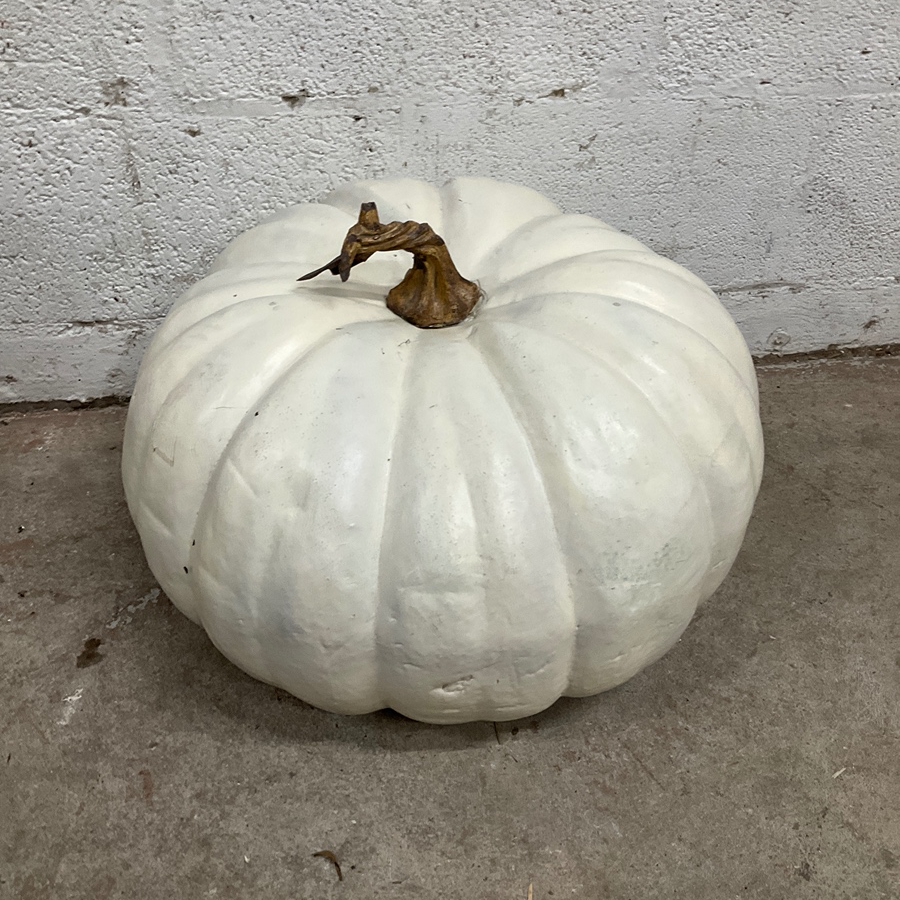 A large white pumpkin perfect for fall or Halloween decor. Ideal for both indoor and outdoor spaces.