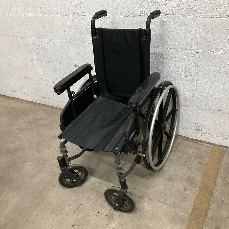 Sturdy manual wheelchair with a lightweight frame, adjustable footrests, and comfortable armrests. Suitable for indoor and outdoor use.