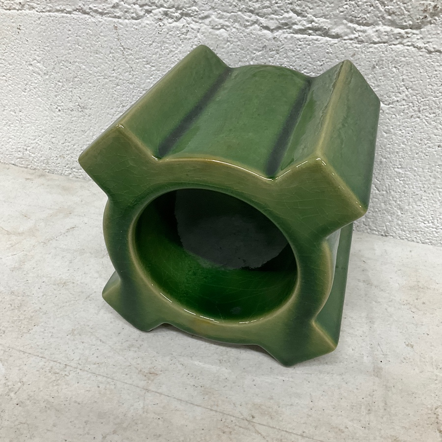 Vintage green glazed ceramic planter, perfect for indoor or outdoor decor in modern or rustic settings.