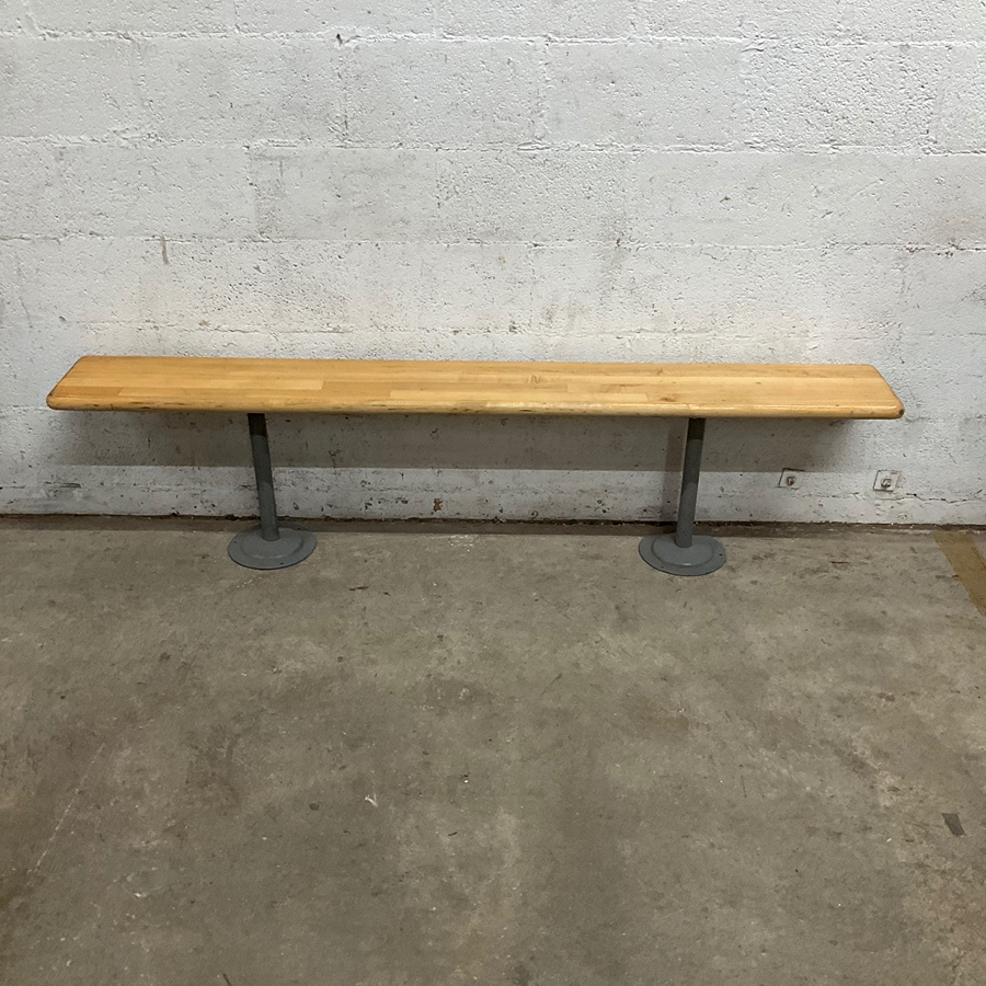 Industrial long bench with wooden top and metal legs. Perfect for modern spaces or communal areas.