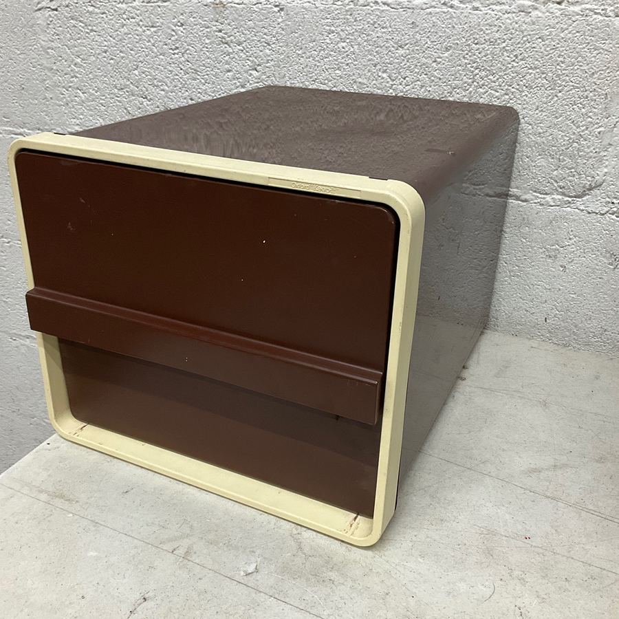 Retro storage drawer with a brown finish. Ideal for organizing spaces in homes or offices. Made of durable plastic.