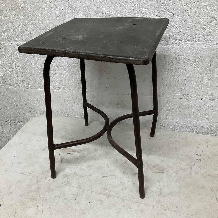 Industrial-style metal side table with a square top. Perfect for loft or modern living spaces. Circa mid-20th century.